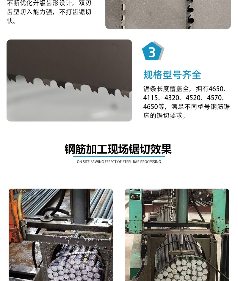 产品介绍:专为锯切钢筋研发。让操作者不必因改变切削钢筋型号而更换锯条。使用更便捷,省时省力省心